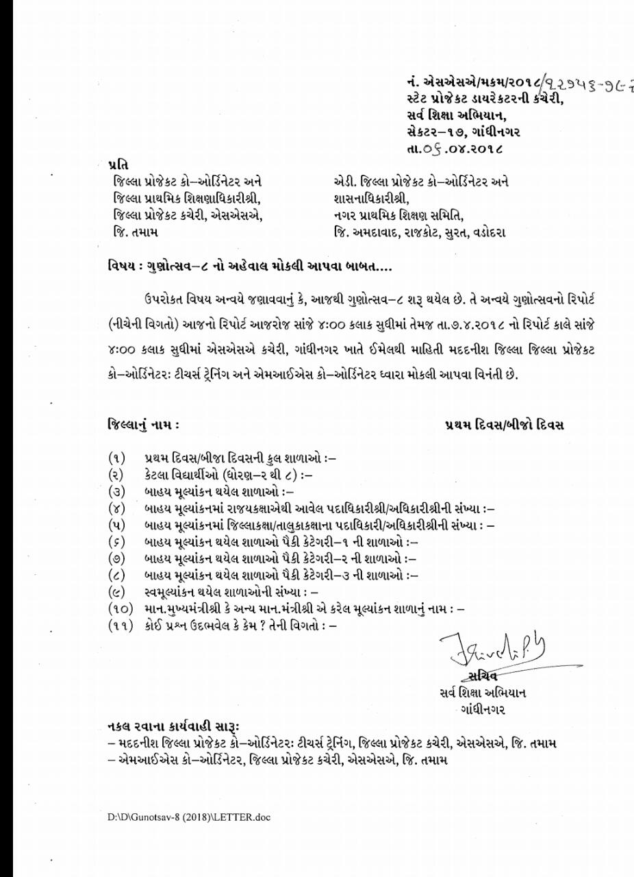 GUNOTSAV-8 KARYKRAM AHEVAL MOKLVA BABAT PARIPATRA DATE- 6-4-2018.
