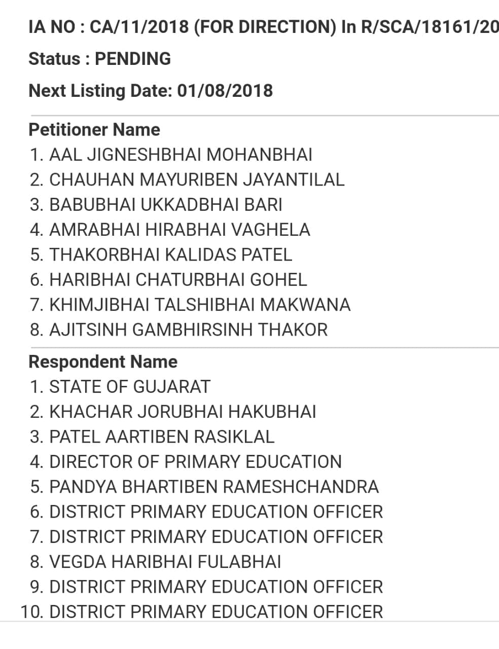 BADLI COURT MATTER NEXT LISTING DATE- 1-8-2018.